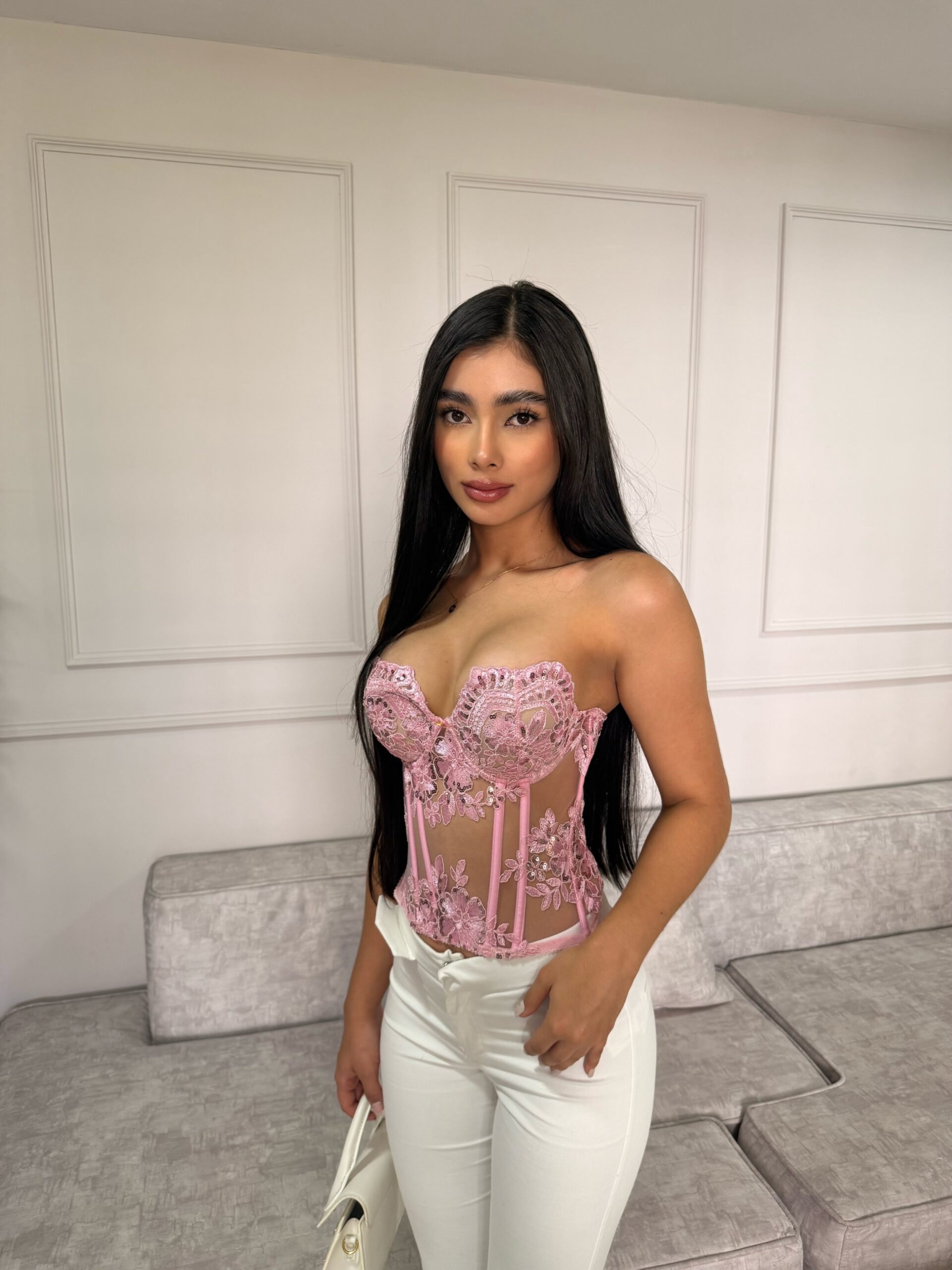 Nuestro Dinasty corset cuidadosamente diseñado y confeccionado, es una pieza única que combina la delicadeza del encaje Chantilly con un corte que realza la figura femenina. Cada corset está adornado con detalles finamente trabajados, que incluyen bordados, encajes y lentejuelas que realzan su belleza y exclusividad.