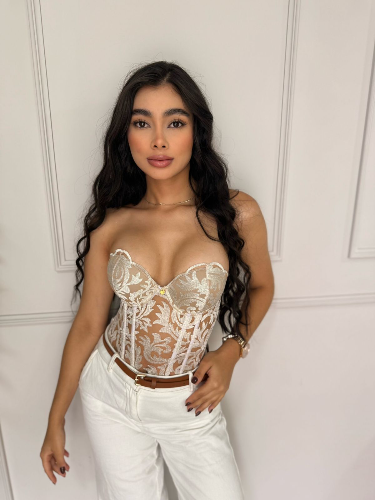 Deslumbra con este corset blanco lleno de encanto y sensualidad. Su diseño en transparencias estratégicas realza tus curvas con elegancia, mientras el delicado encaje le da un toque romántico y moderno. Ideal para ocasiones especiales o para sentirte increíble cualquier día. ¡Una prenda irresistible que no puede faltar en tu closet!