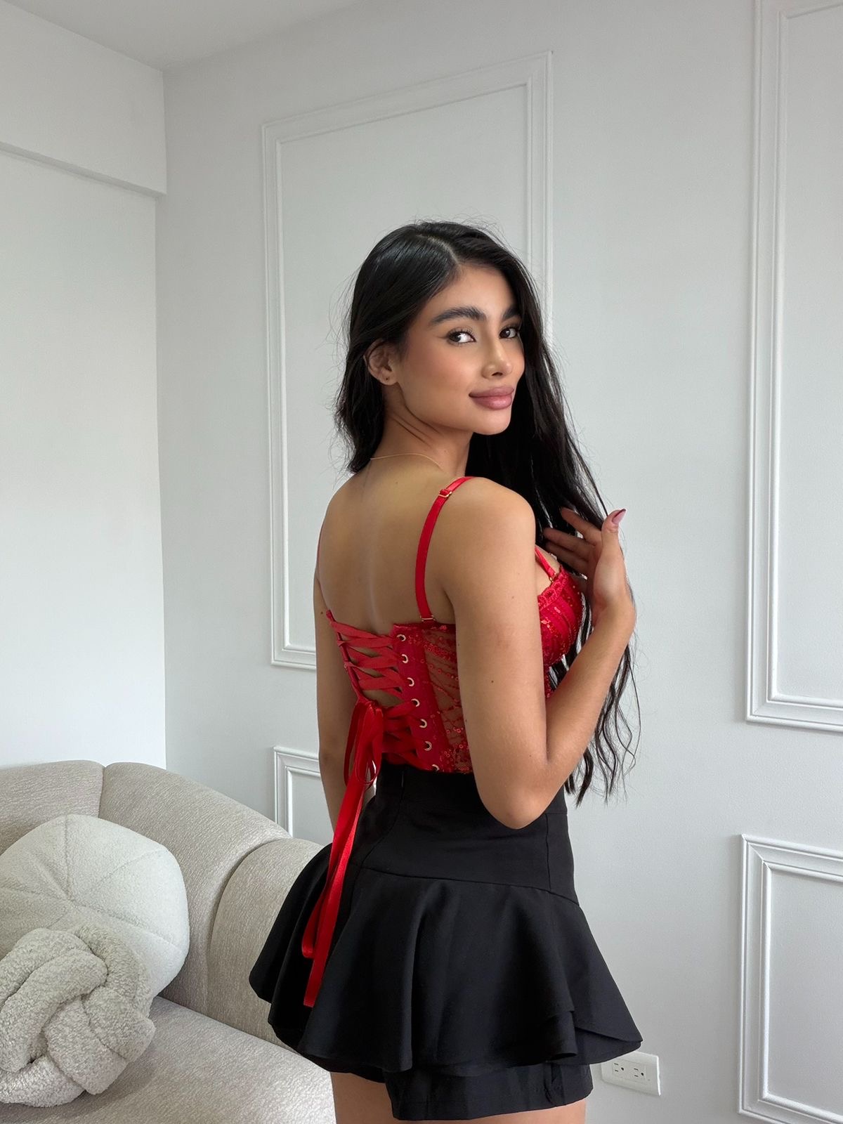 Este corset rojo de lujo es una pieza protagonista diseñada para robar miradas. Está completamente bordado en pedrería, con acabados brillantes que reflejan elegancia, poder y sensualidad en cada detalle. Su estructura interna con varillas proporciona un realce espectacular del busto, mientras define y moldea la cintura, creando una silueta reloj de arena perfecta. El diseño estiliza el torso y brinda soporte, logrando un ajuste firme pero cómodo.